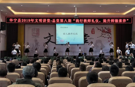 为提升师德素养,进一步加强精神文明建设,11月8日,由华宁县文明办主办,华宁县幼儿园承办的华宁县2019“文明(道德)讲堂”总堂第八期活动举行,本次文明(道德)讲堂的主题为“践行教师礼仪,提升师德素养”。