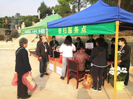 今年清明节正值新冠肺炎疫情防控期间,华宁万安公墓作为全县唯一一座经营性公墓,更加注重安全防护措施,园区内禁止燃烧纸火,同时还在公众号上提倡市民网上提前预约,分时段错峰祭扫,防止人群大量聚集。此外,该园区还实行车辆分流,开通了万安公交车,方便市民前往祭扫,园区入口设置祭扫咨询点,引导车辆停放,减少拥堵。